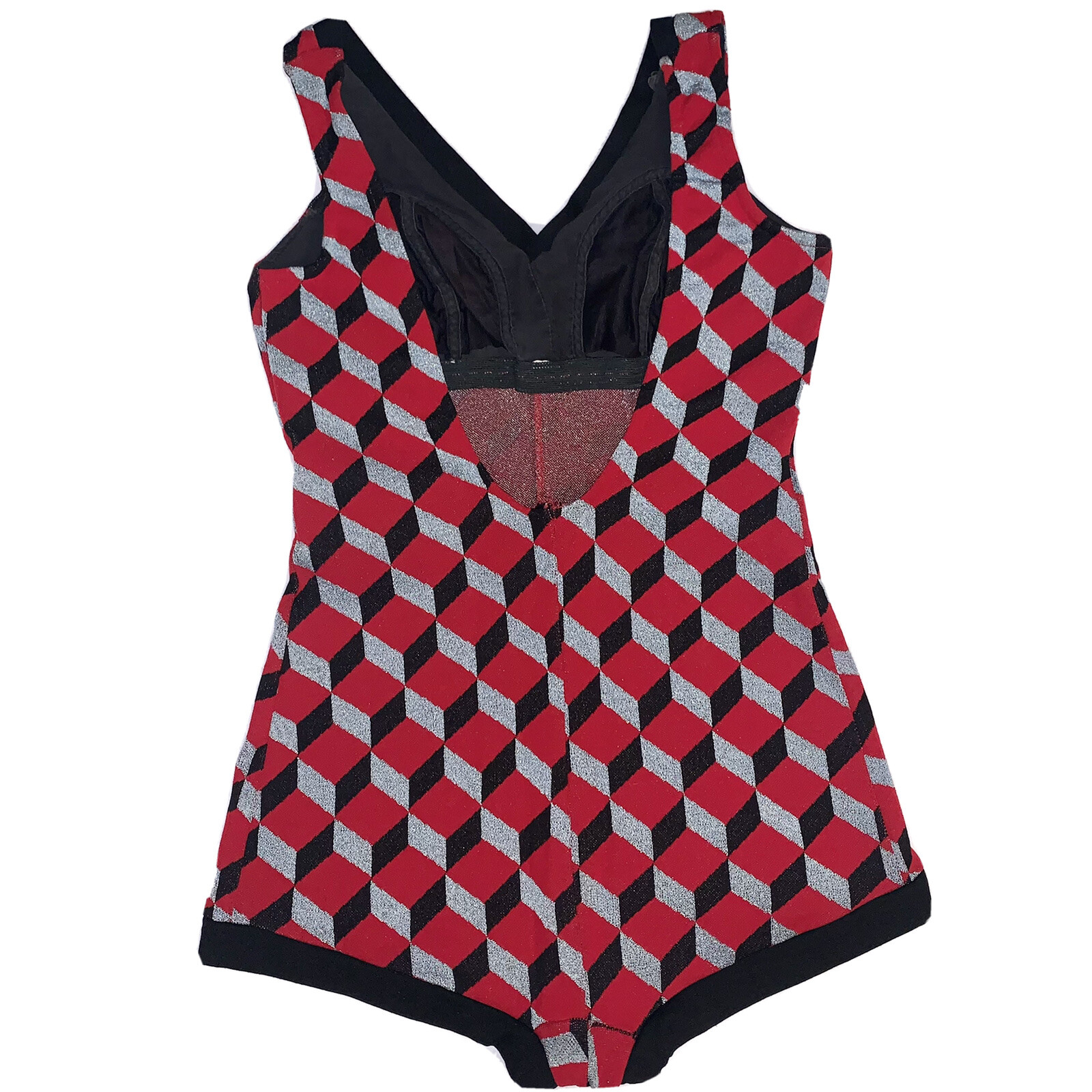 Vintage 60s Mod Women S Crazy Geometric One Piece Swim Suit Hippy Gogo Red Black Ebay